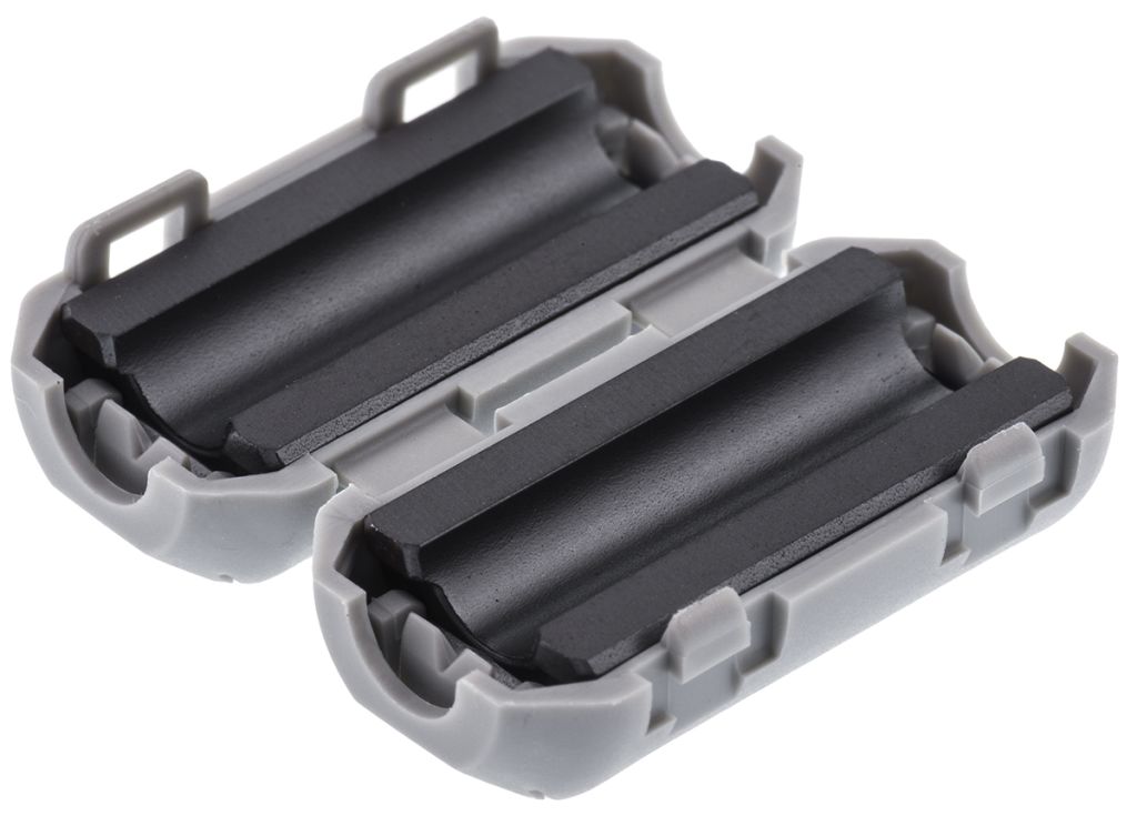 These split ferrite cores reduce the electromagnetic interference from being induced in or radiated from data and power cables. High attenuation ratings are achieved with the housing design and the special process steps during the ferrite manufacture. The special snap lock makes the ferrite sleeve suitable for use with a variety of cable diameters and once the split ferrite is locked it cannot be opened accidentally.The outer housing is designed to protect the halves of the core from breakage and ensures simple assembly on to cables that are already installed or which have been fitted with connectors. Fixing to the cable with glue or cable tie is optional. Typical applications for these split ferrite cores include data or power lines used in computer technology, terminals, industrial controllers, medical engineering and office machines.