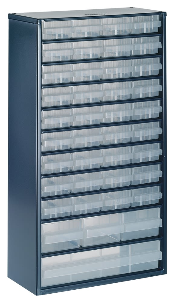 | Product description | Raaco 40 Drawer Storage Unit, Steel, 552mm x 306mm x 150mm, Blue |