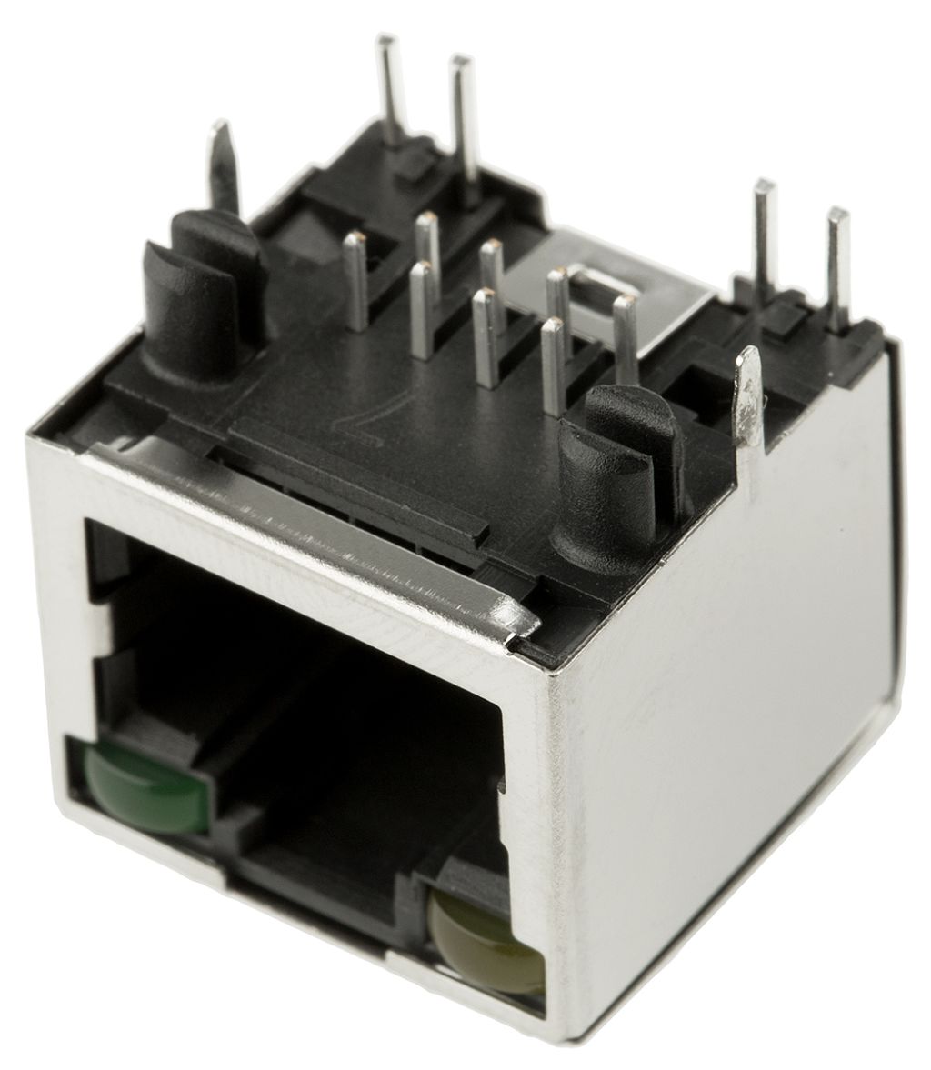 From Amphenol, this range of PCB mounting RJ45 (8//8 way) socket have built-in LEDs and are designed for category 5 performance. Available in both shielded and unshielded versions, a thermoplastic body ensures a component that is robust and compact. The range is available not only with discrete green and yellow LEDs, but also with bi-colour LED versions. The bi-colour types have two LEDs, both with green/yellow indication. All models are highly reliable and excellent quality.