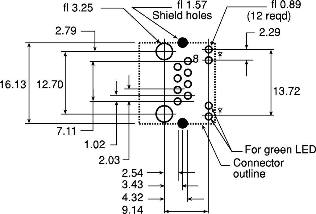 For discrete types, viewing from the front of the socket, the green LED is on the right, the yellow on the left.