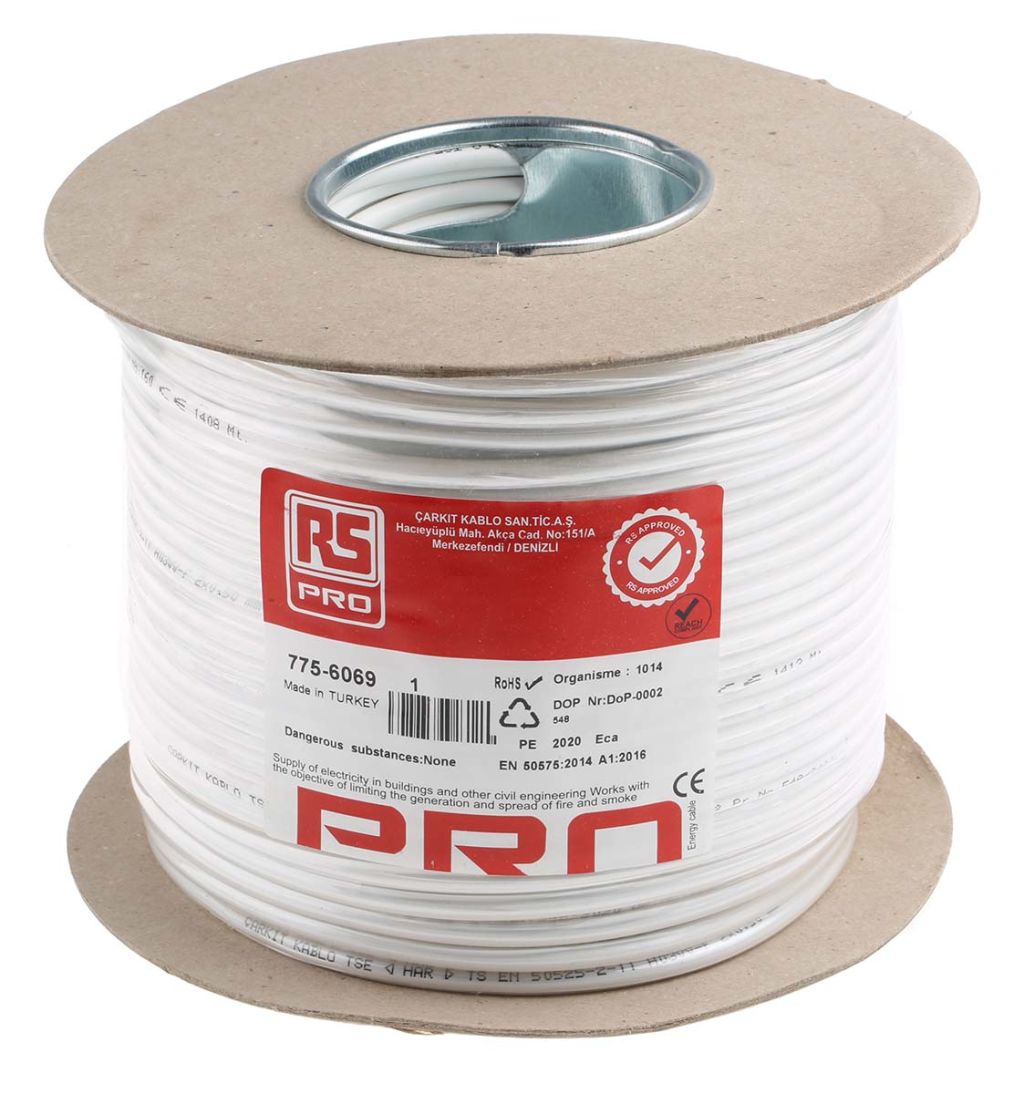 | Product description | RS PRO H03VV-F 2 Core 2182Y Power Cable, 0.5 mm², 3 A, 100m, White PVC Sheath, 300 V, 500 V |