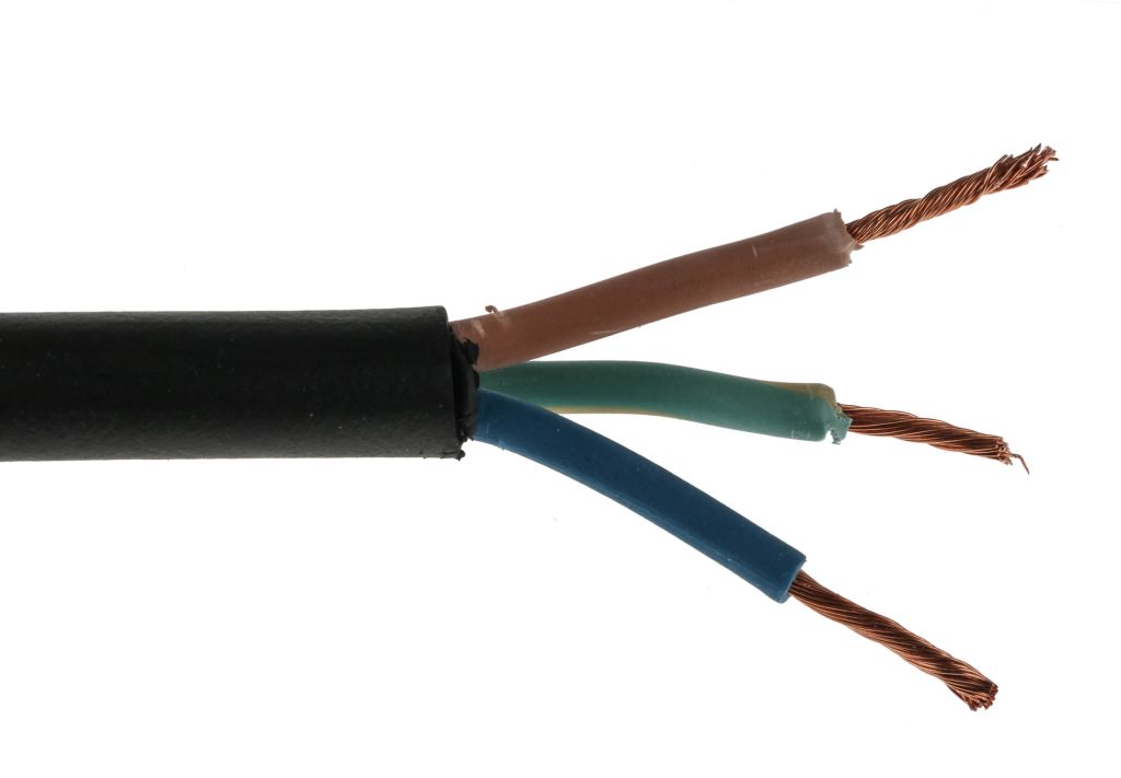 This flexible cable consists of cores made up of bare stranded copper conductors or wires. Each individual core is surrounded by colour coded rubber insulation for easy identification of the wires. All the cores are then surrounded by a final layer of rubber called a sheath or jacket.