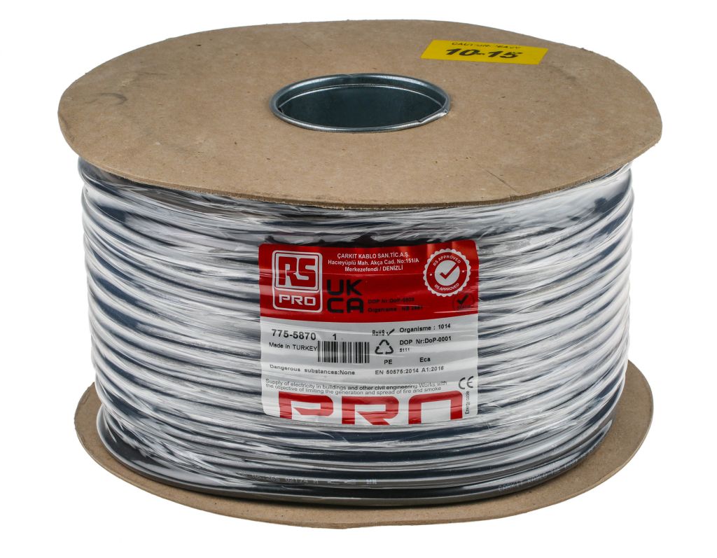 From RS PRO a high-quality medium duty H05VV-F harmonised flexible mains power cable with PVC insulation and a PVC jacket. This flexible cable has a voltage rating of 300 to 500 V and is designed for use in medium duty domestic and light industrial appliances