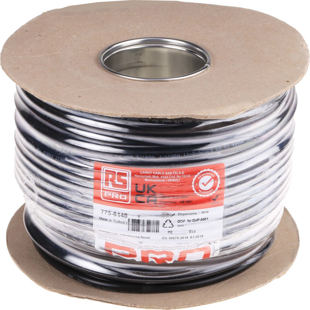 RS PRO H05VV-F 4 Core 3184Y Power Cable, 0.75 mm², 6 A, 100m, Black PVC Sheath, 300 V, 500 V