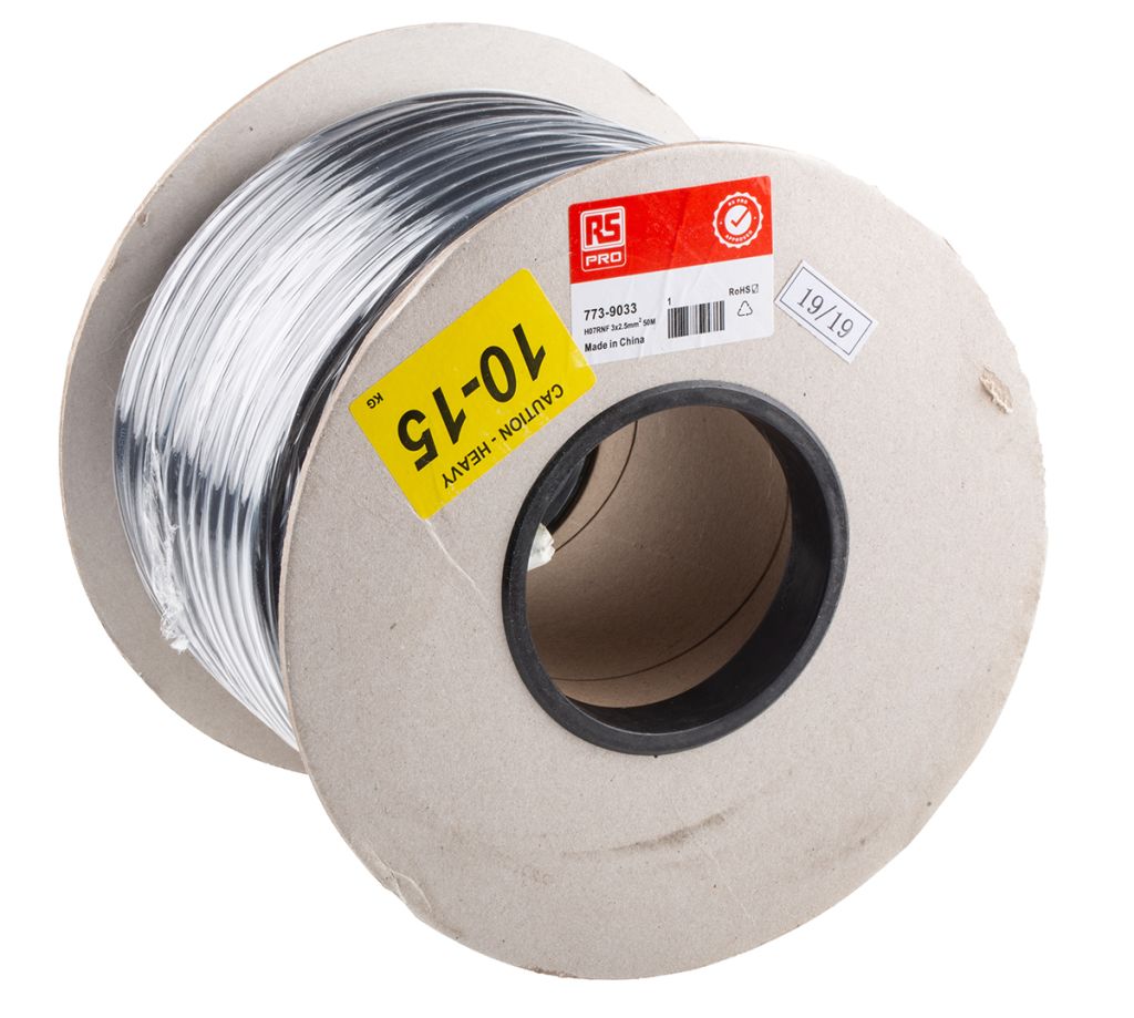 | Product description | RS PRO H07RN-F 3 Core Power Cable, 2.5 mm², 25 A, 50m, Black CPE Sheath, 450 V, 750 V |