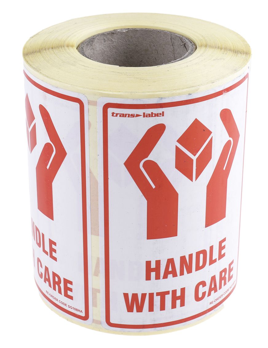 | Product description | RS PRO Paper Safety Labels, Handle with Care-Text 79 mm x 108mm |
