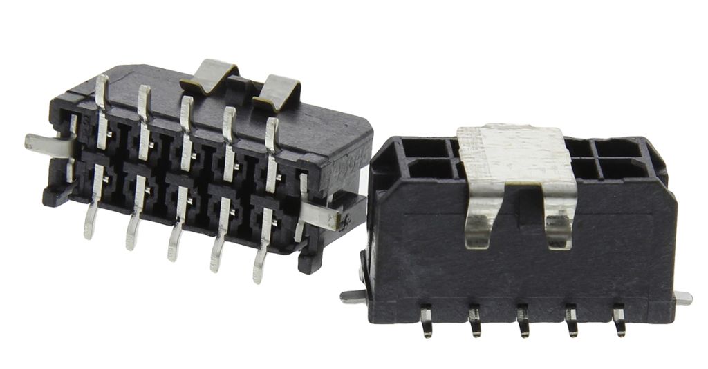 Micro-Fit 3.0 3mm pitch wire to board SMT headers which form part of a compact power connector system providing a low to mid-range power distribution solution. With the ability to carry up to 5A of current, Micro-Fit 3.0 connectors have one of the highest current carrying abilities in the smallest footprints available. These Micro-Fit 3.0 PCB headers incorporate positive latching in the form of a locking ramp on the housing for secure mating and to prevent accidental disconnection. The housings are made of high-temperature UL 94V-0 Liquid Crystal Polymer that can withstand temperatures of up to 265°C during the IR reflow soldering process. To secure these Micro-Fit 3.0 SMT headers to the PCB board, solder tabs are incorporated into the connector design. The contacts of these Micro-Fit 3.0 headers are fully isolated within the housings to reduce arcing. Tin or a choice of two thicknesses of gold contact platings are available to keep down costs.