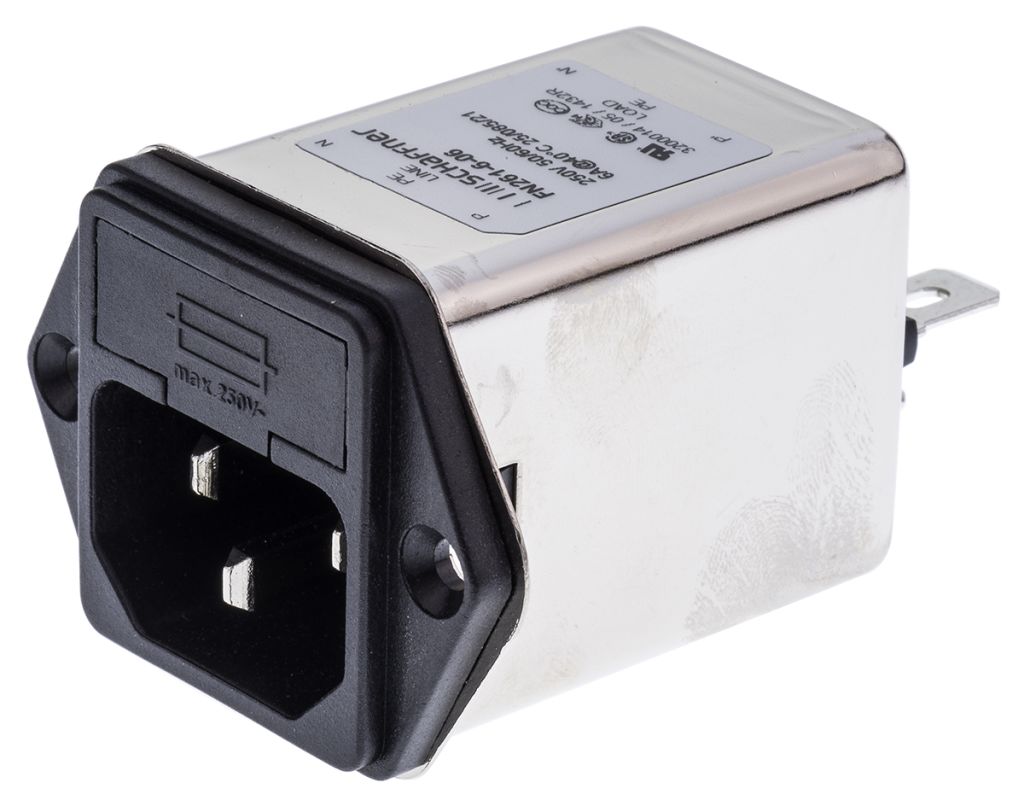 | Product description | Schaffner,6A,250 V ac Male Panel Mount IEC Filter FN261-6-06,Faston 1 Fuse |