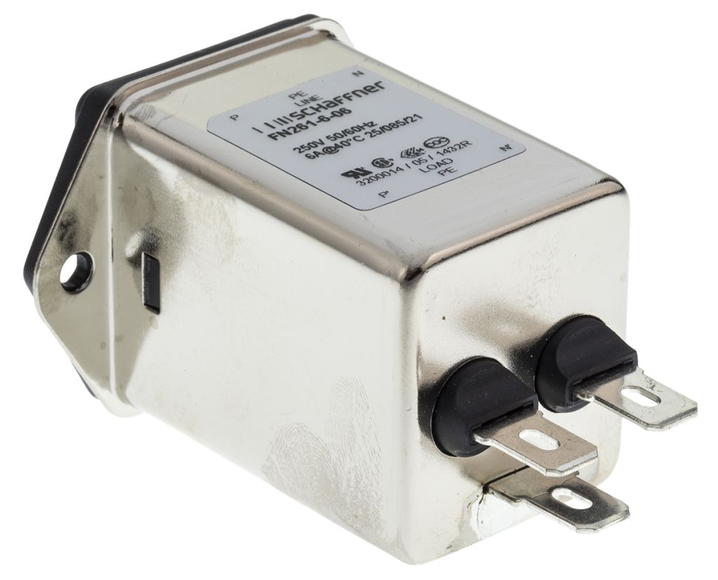Schaffner,6A,250 V ac Male Panel Mount IEC Filter FN261-6-06,Faston 1 Fuse