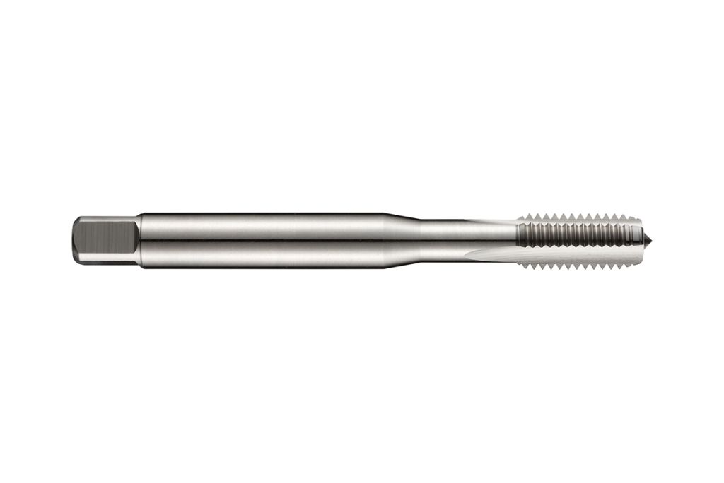A range of cobalt metric pitch machine tap bits that meet stringent high-production machining demands due to significant resistance to wear and high temperatures. These tap bits have a short entry of 2-3 threads and the tap bit tolerance class is 6H. The taps cutting angle is 10° and the tap flutes are straight. These taps also feature a reinforced shank and a shiny surface treatment.