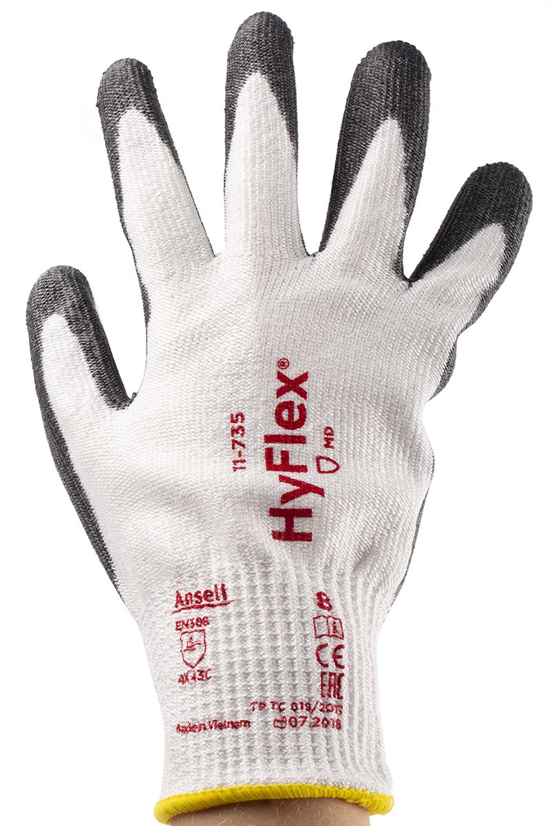 | Product description | Ansell HyFlex 11-935 White Polyurethane Coated Yarn Work Gloves, Size 8, Medium, 2 Gloves |