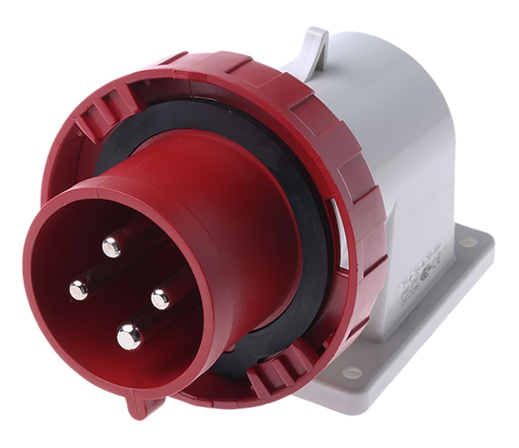 | Product description | RS PRO IP66, IP67 Red Wall Mount 3P+E Right Angle Industrial Power Plug, Rated At 32A, 415.0 V |