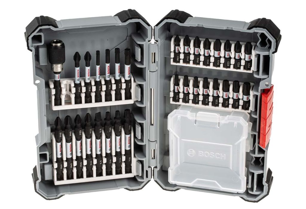Bosch 31 piece impact control screwdriver bit set. An impact driver bit set for use with all impact drivers and normal drill drivers, suitable for use in heavy-duty applications.