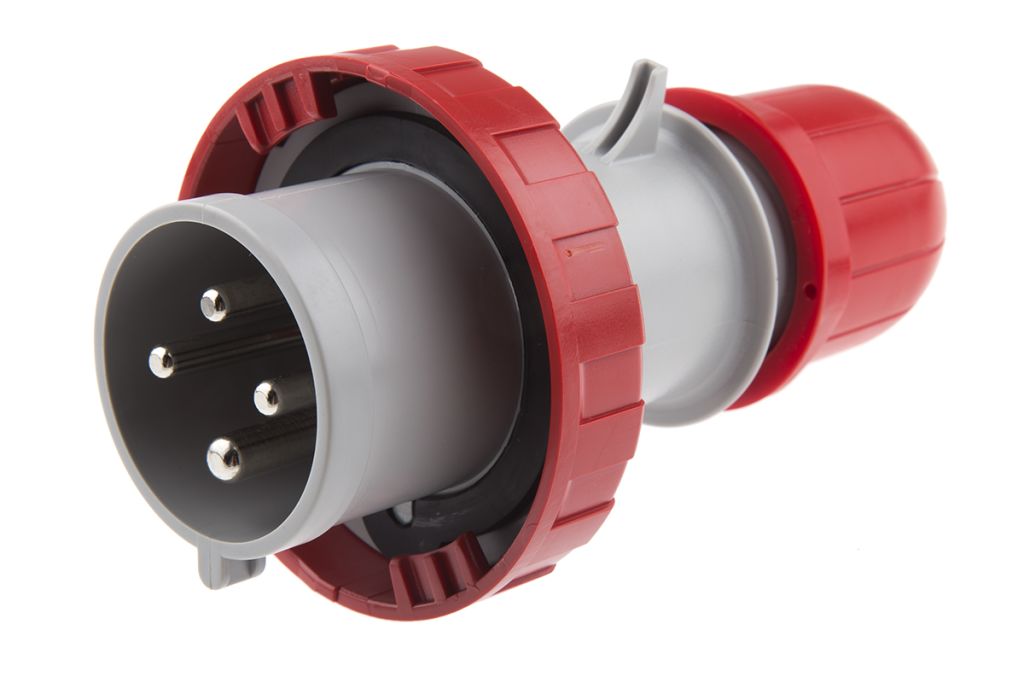 Scame IP66, IP67 Red Cable Mount 3P+E Industrial Power Connector Adapter Plug, Rated At 32A, 415.0 V,With Phase Inverter