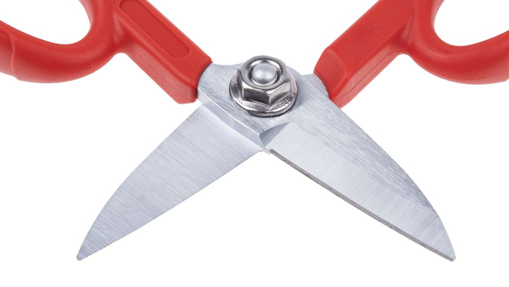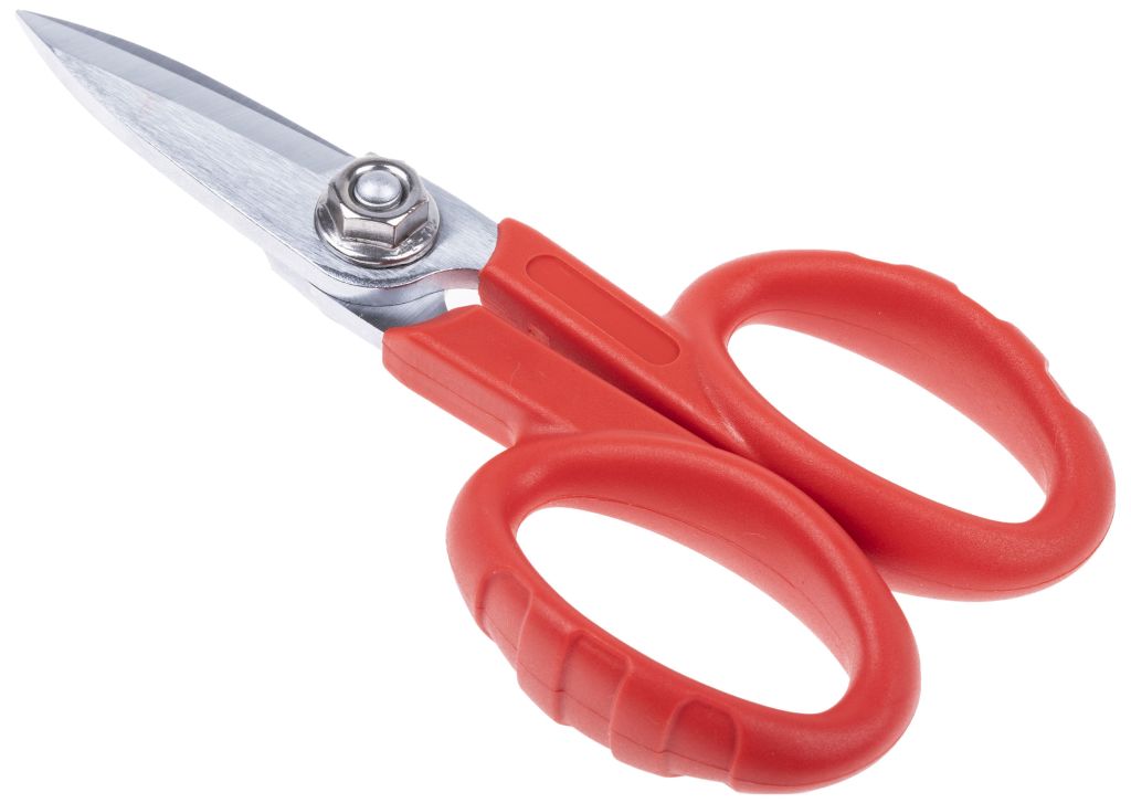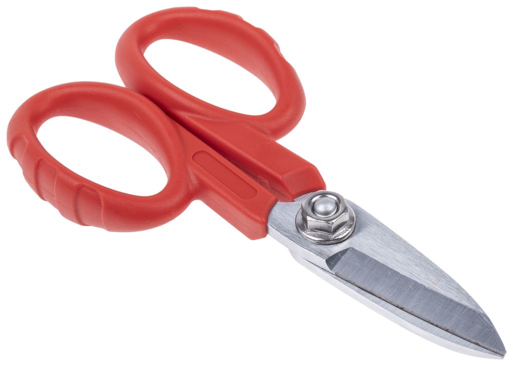 Our RS PRO-heavy-duty, chrome steel electricians scissors with a notch are ideal for electricians out in the field whilst working. These scissors have been specifically designed to cut Kevlar and other tough aramid fibres that are practically impossible to cut with conventional scissors and shears. These purpose-designed scissors incorporate a serrated cutting edge. The blades are also thick to resist bending, preventing the aramid fibres from getting between the blades.