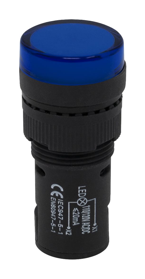 | Product description | RS PRO, Panel Mount Blue LED Pilot Light, 16mm Cutout, IP40, Round, 120 V ac/dc |