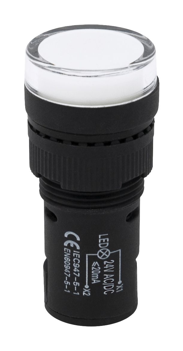 | Product description | RS PRO, Panel Mount White LED Pilot Light, 16mm Cutout, IP40, Round, 24V ac/dc |