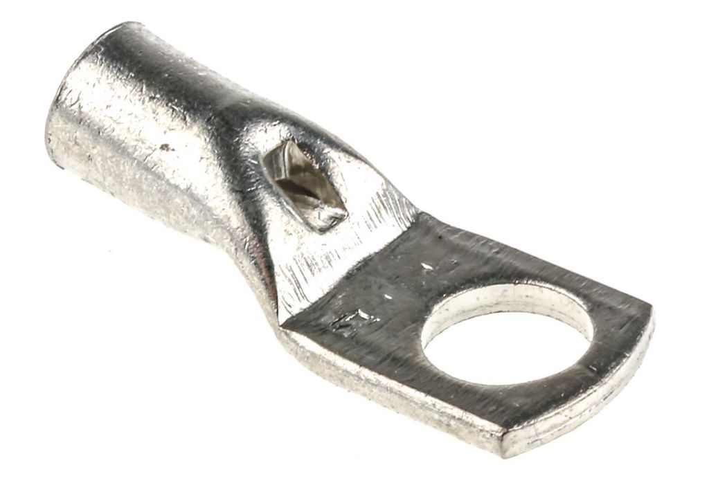 From RS PRO a high-quality heavy-duty tubular crimp ring terminal, also known as a ring connector or cable lug. Heavy duty ring crimp terminals are used for connecting multi-stranded cables to a stud or a post on an electrical component such as a battery terminal. This tubular ring terminal is made from thick-walled, heavy-duty, highly conductive copper and is tin plated. Once correctly crimped onto a cable this ring terminal will provide a secure and reliable electrical connection.