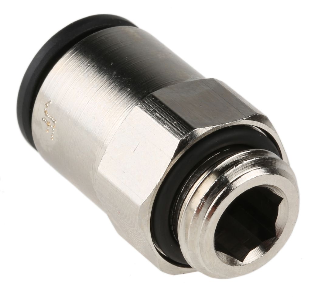 The 3101 fittings allow plastic pneumatic tubing to be connected to threaded ports. They can be tightened with a socket wrench or adjusted using an Allen key internally.