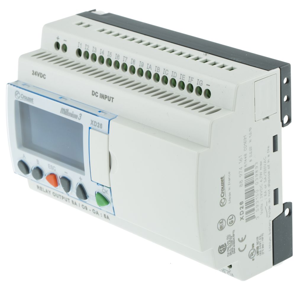 | Product description | Crouzet Millenium 3 Logic Control - 16 Inputs, Relay, For Use With XD26 Series, Front Panel Interface |