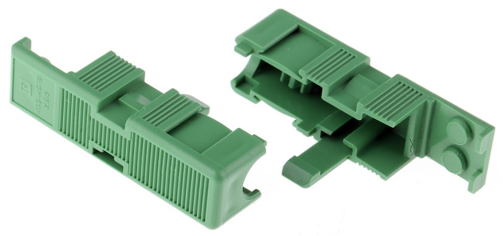 A range of green, ABS plug-in cable housings that consist of two snap-locking half-shells that can be manually fitted together