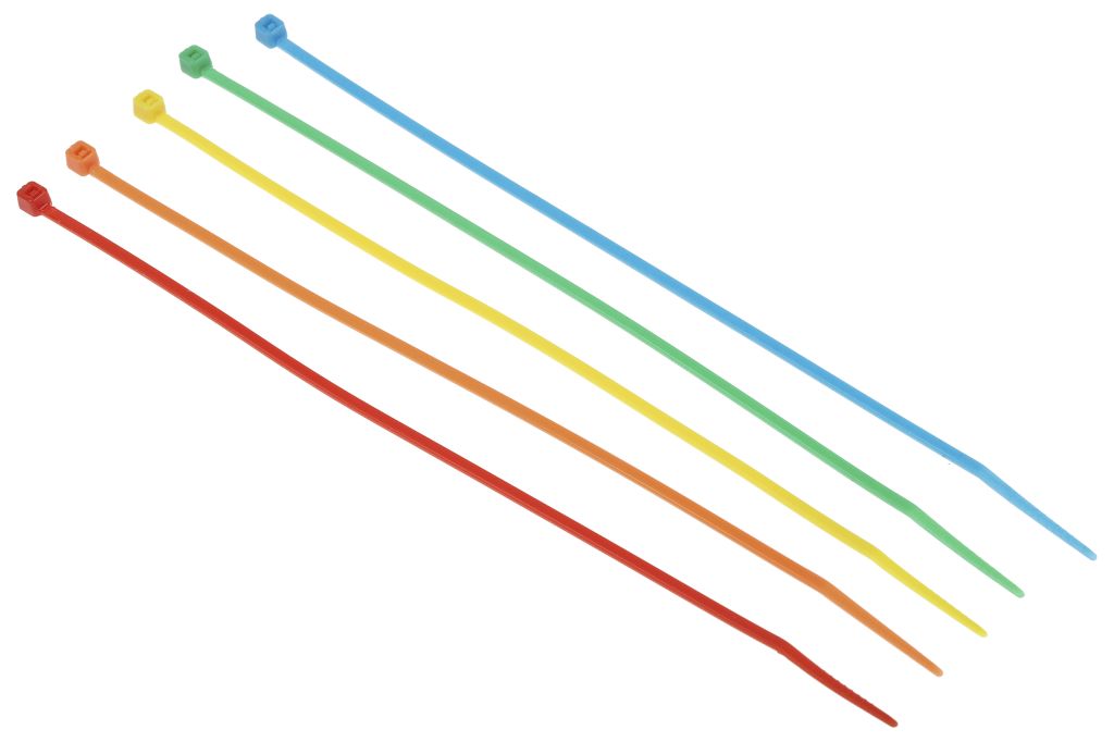 Each pack contains 250 non-releasable cable ties, comprising 50 each of yellow, blue, red, green and orange to enable colour coding of cables or components. Ideal for cable and wire management.