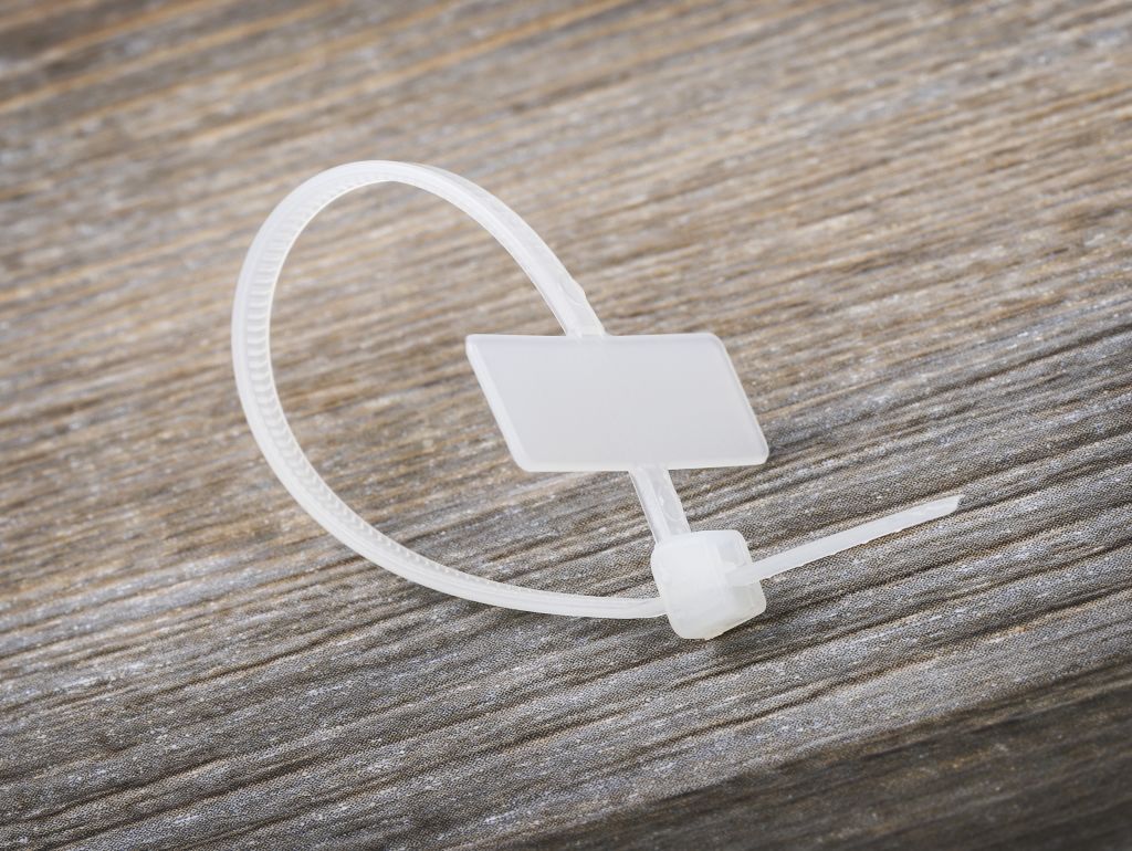RS PRO cable tie with an integral identification plate (25mm x 8mm) manufactured from white Nylon 66 (also known as nylon 6.6) which can be written on with an indelible pen. These cables ties enable you to both tie and identify the bundles of cable quickly.