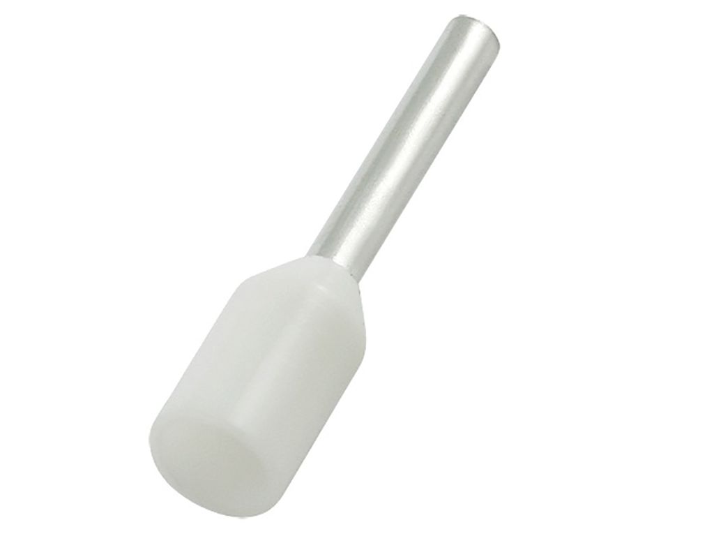 | Product description | RS PRO Insulated Crimp Bootlace Ferrule, 6mm Pin Length, 1.3mm Pin Diameter, 0.5mm² Wire Size, White |