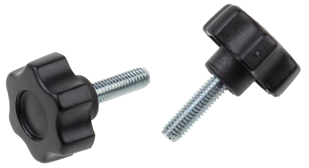 Scallop-shaped handwheels provide an easily-gripped shape, with a varying number of lobes depending on the grip and pressure required. The knobs are fitted with either a protruding screw (male), a threaded insert (female) or through threads depending on the requirements of the application.