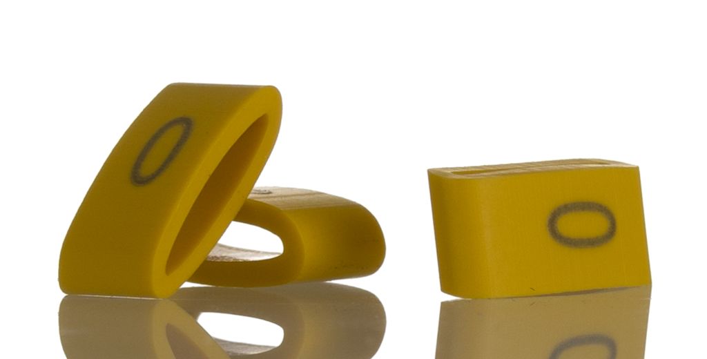 HellermannTyton Ovalgrip Slide On Cable Markers, Pre-printed “0”, Black on Yellow, 2.5 → 6mm Dia. Range