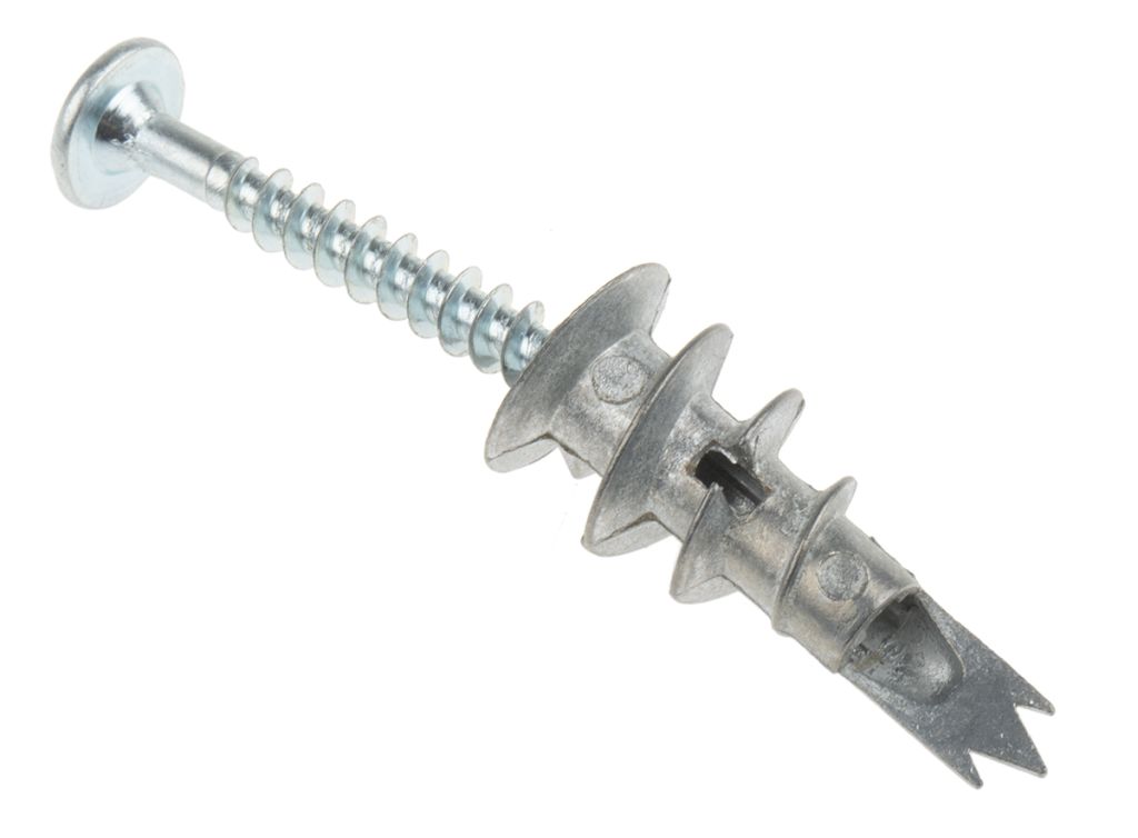 A zinc alloy plasterboard anchor which is quick and easy to install. A self drilling fixing suitable for plasterboards, double boards and aerated cement blocks.,Designed for light to medium applications such as pipe brackets, switch boxes, light fittings, shelving etc.