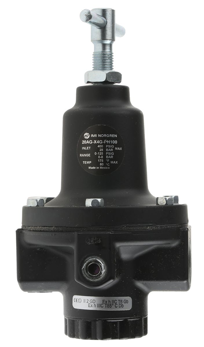 Norgren 20AG series high flow pressure regulator maintains a constant output pressure via a balanced valve that minimises pressure variations in inlet. A large diaphragm design allows accurate and fast response to changing flow demands and line pressure.