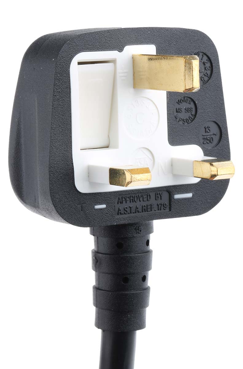 RS PRO IEC C13 Socket to GB BS1363 Plug Power Cord, 2m