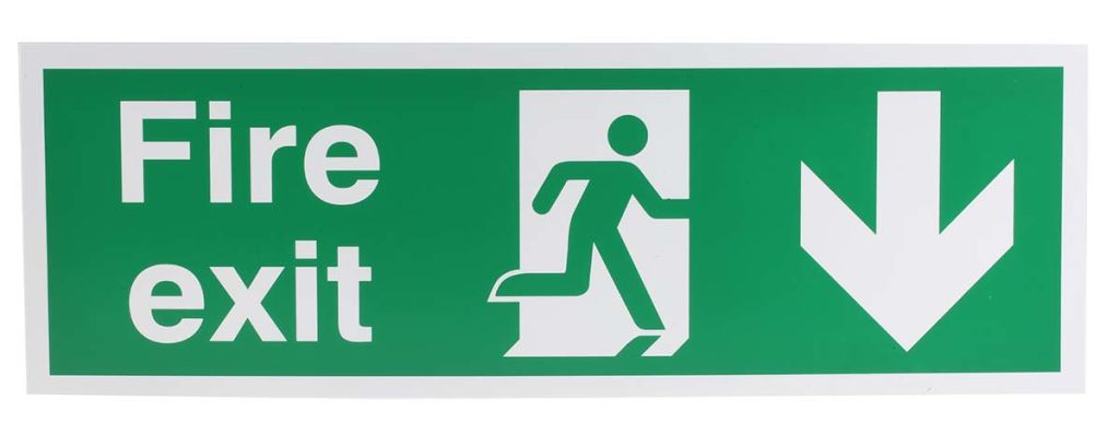 The regulations also state that all fire exit safety signs must contain a symbol e.g. a running man. Supplementary text only signs (e.g. FIRE EXIT) can be included on a sign or used in conjuction with a symbol sign but cannot be used without a symbol.