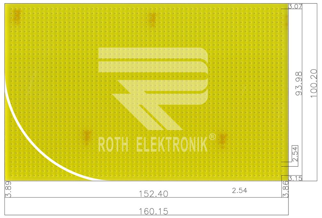 | Product description | Roth Elektronik Photoresist Board FR4 With 38 x 61 1mm Holes, 2.54 x 2.54mm Pitch, 160 x 100 x 1.5mm |