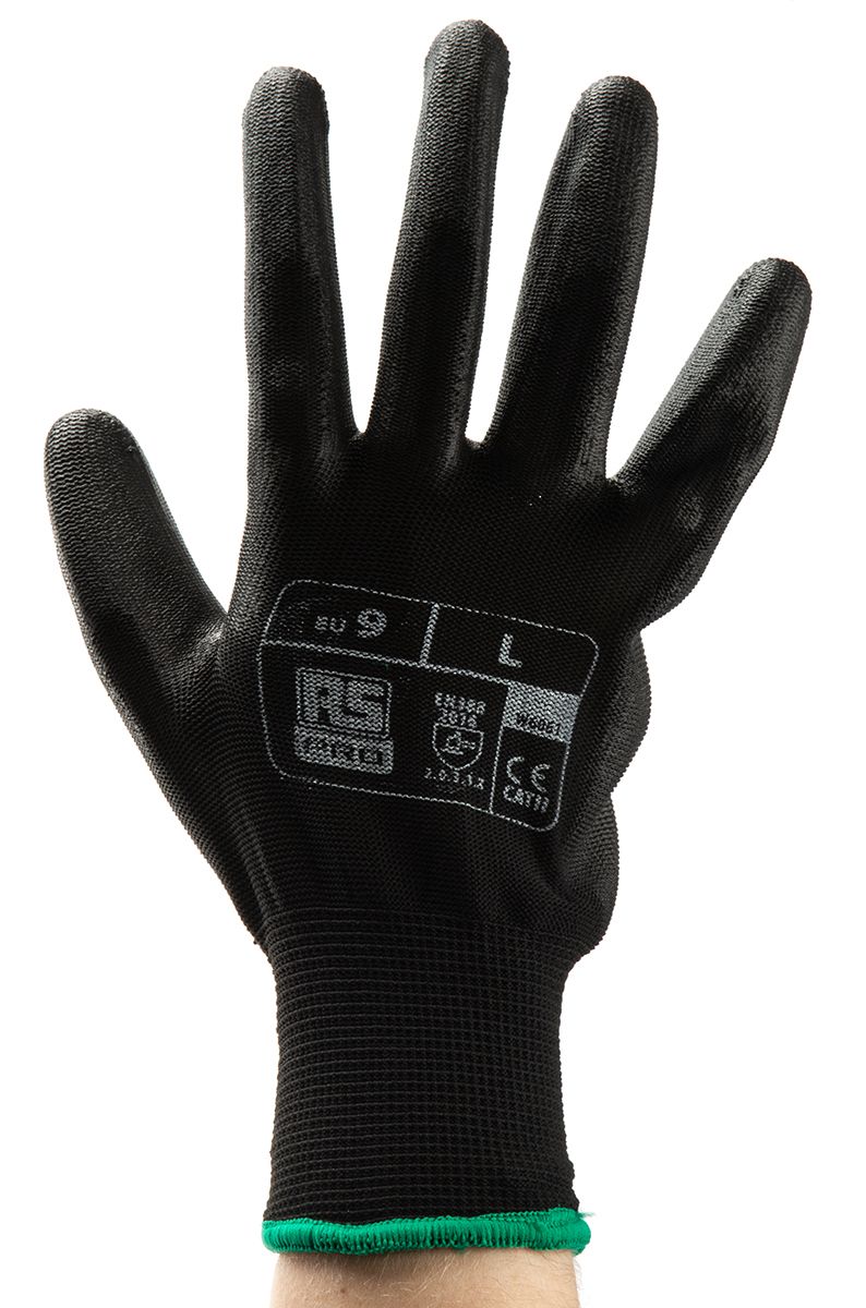 Product description RS PRO Black Polyurethane Coated Work Gloves, Size 9, Large