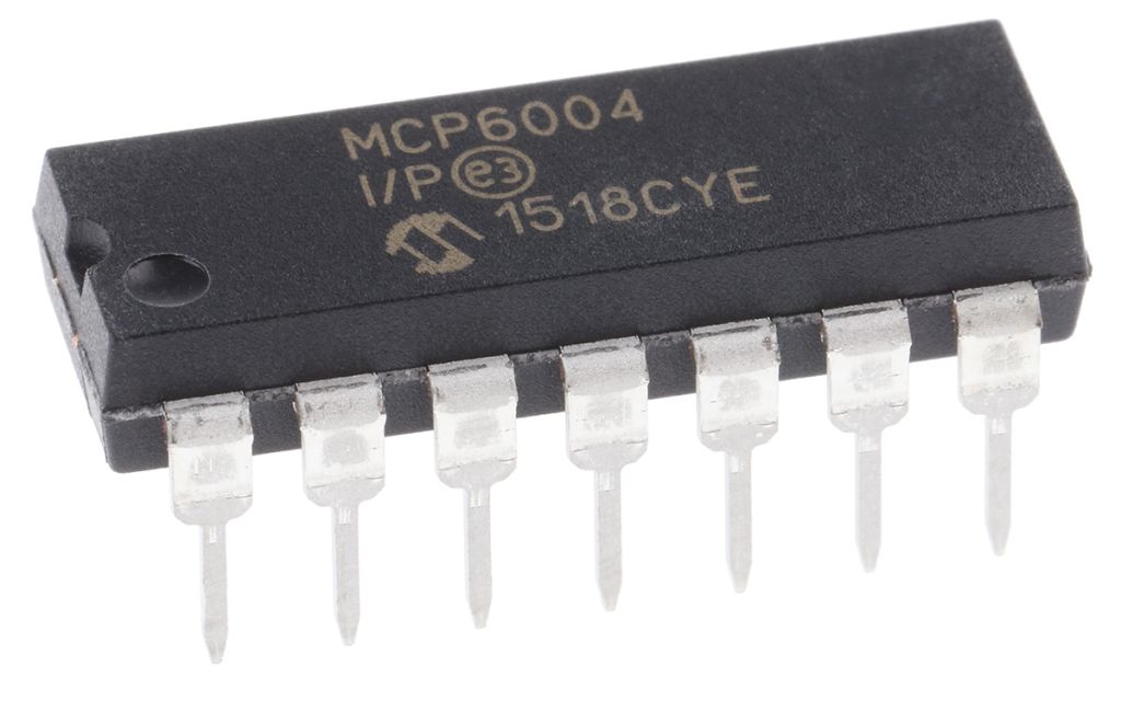 | Product description | MCP6004-I/P Microchip, Op Amp, RRIO, 1MHz, 3 V, 5 V, 14-Pin PDIP |