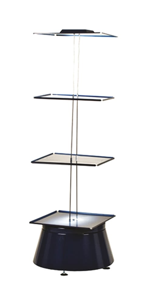 Accepts 12 cabinets (3 each side) in multiples of 4 and in any drawer combination. Runs on maintenance free, heavy duty roller bearings and will allow 360° of movement in either clockwise or anti-clockwise direction The complete system is easy to assemble and is stable in use. Irregularity in the floor surface may be compensated for using the four adjusting feet
