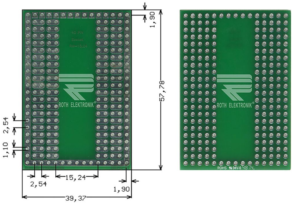 Adaption circuit board for 40-Pin-Sockets with a distance of 15.24 mm