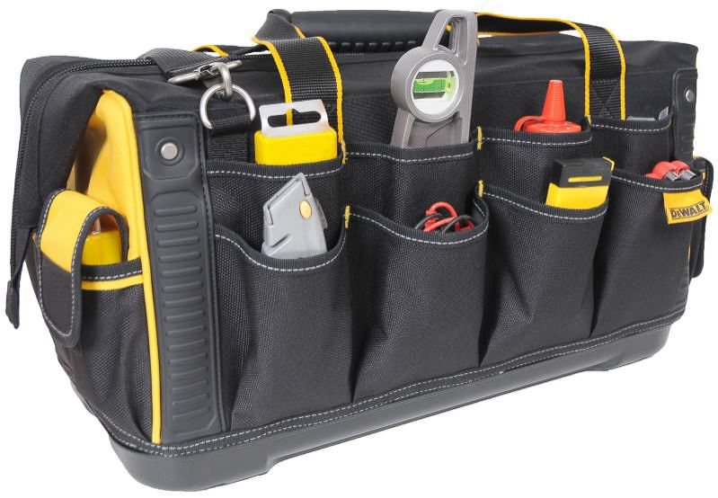 DeWALT has created a series of durable tote/ tool bags with storage space to support just about any hand tool. These professional tool bags have multiple internal and external compartments, a base reinforced with polypropylene to protect from wet surfaces plus handles and a shoulder strap for easy portability.