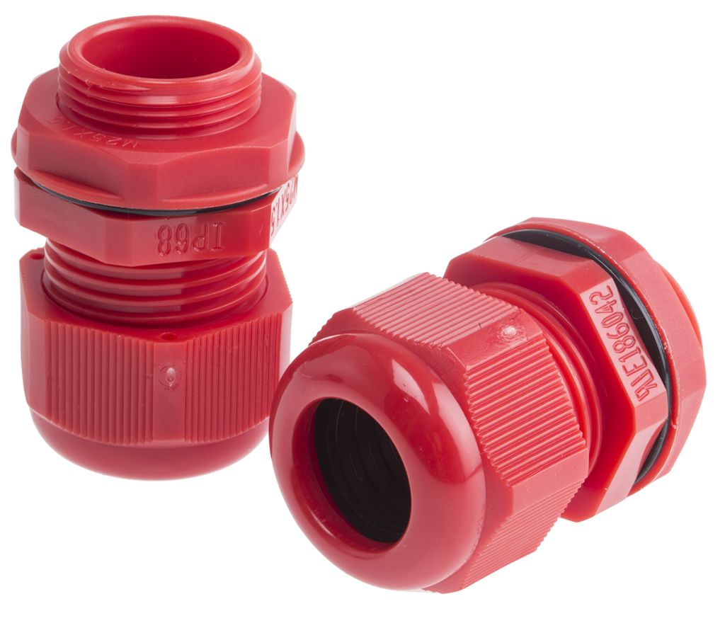 | Product description | RS PRO Nylon M25 Cable Gland With Locknut, 18mm, IP68, Red |