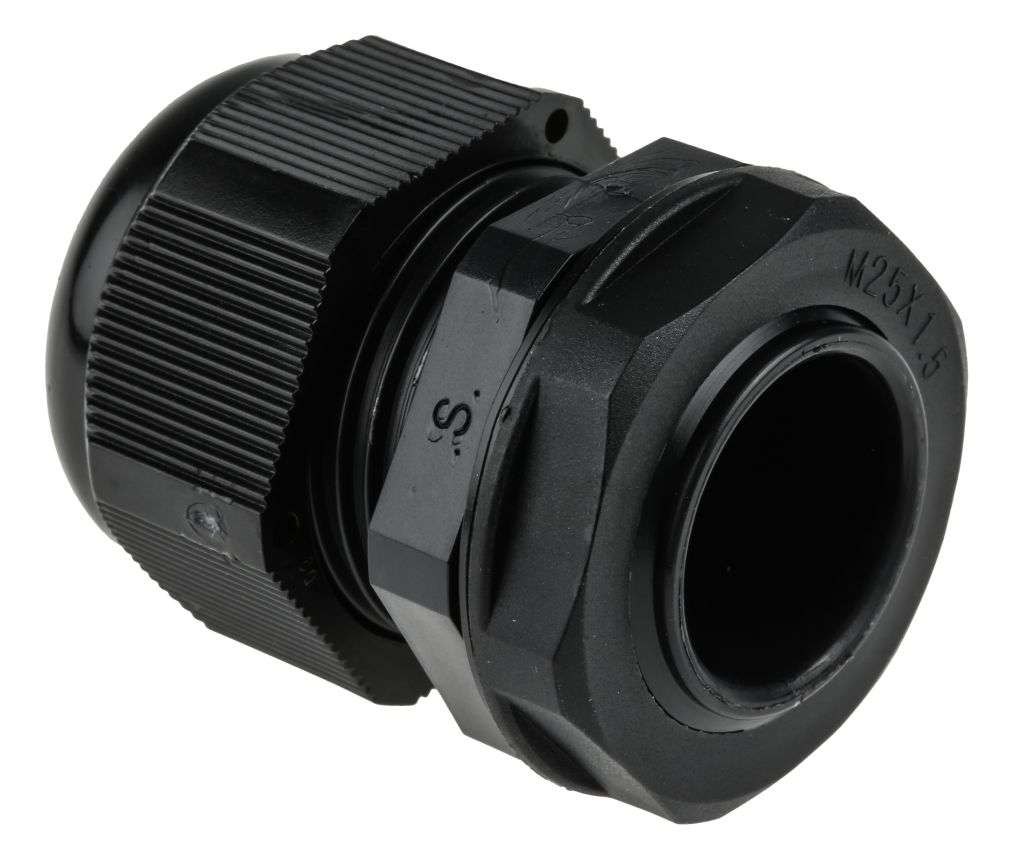 | Product description | RS PRO Nylon M25 Cable Gland With Locknut, 18mm, IP68, Black |