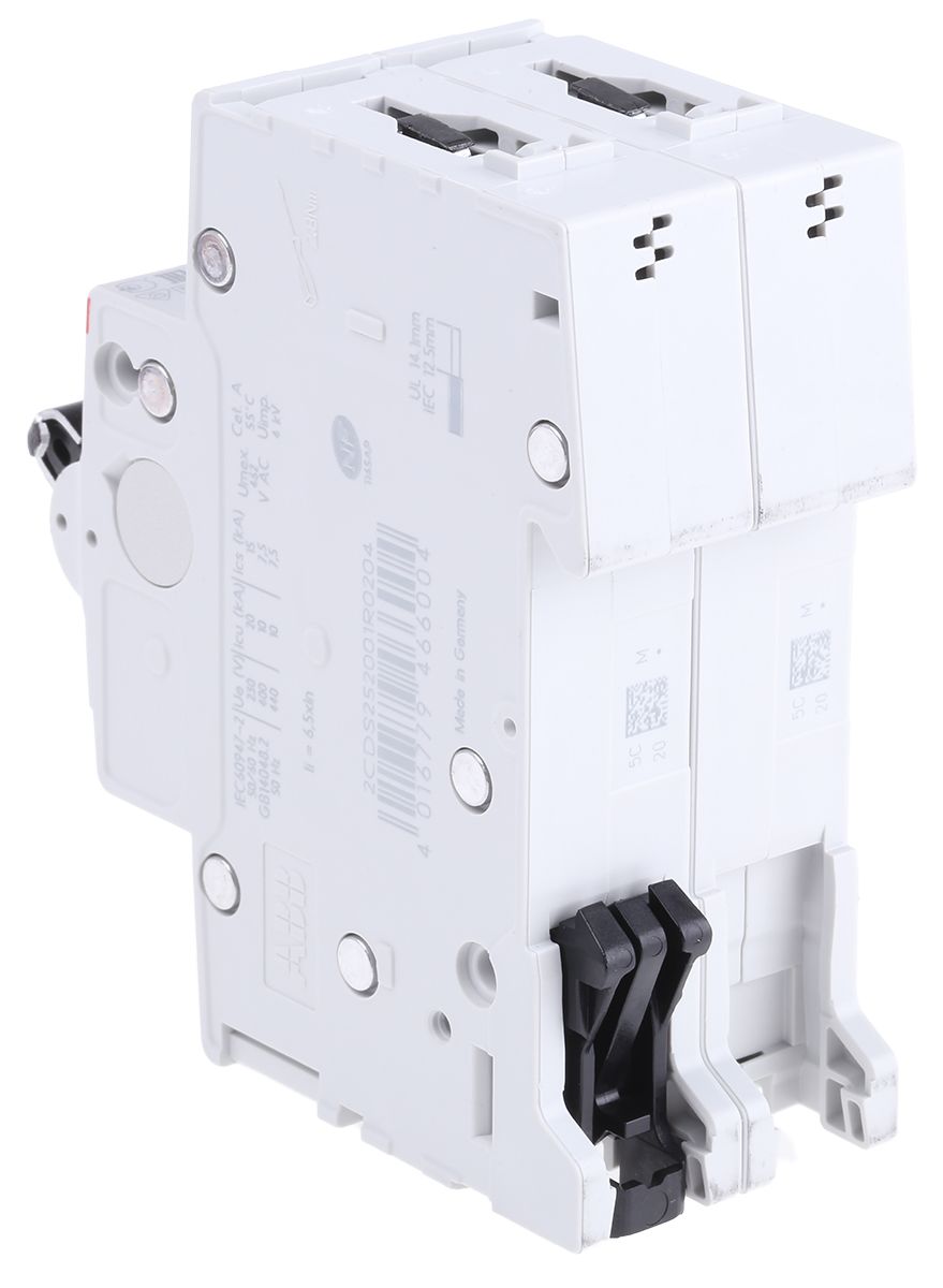 ABB System M Pro 20A MCB Mini Circuit Breaker, 2P Curve C, Breaking Capacity 6 kA, 400V
