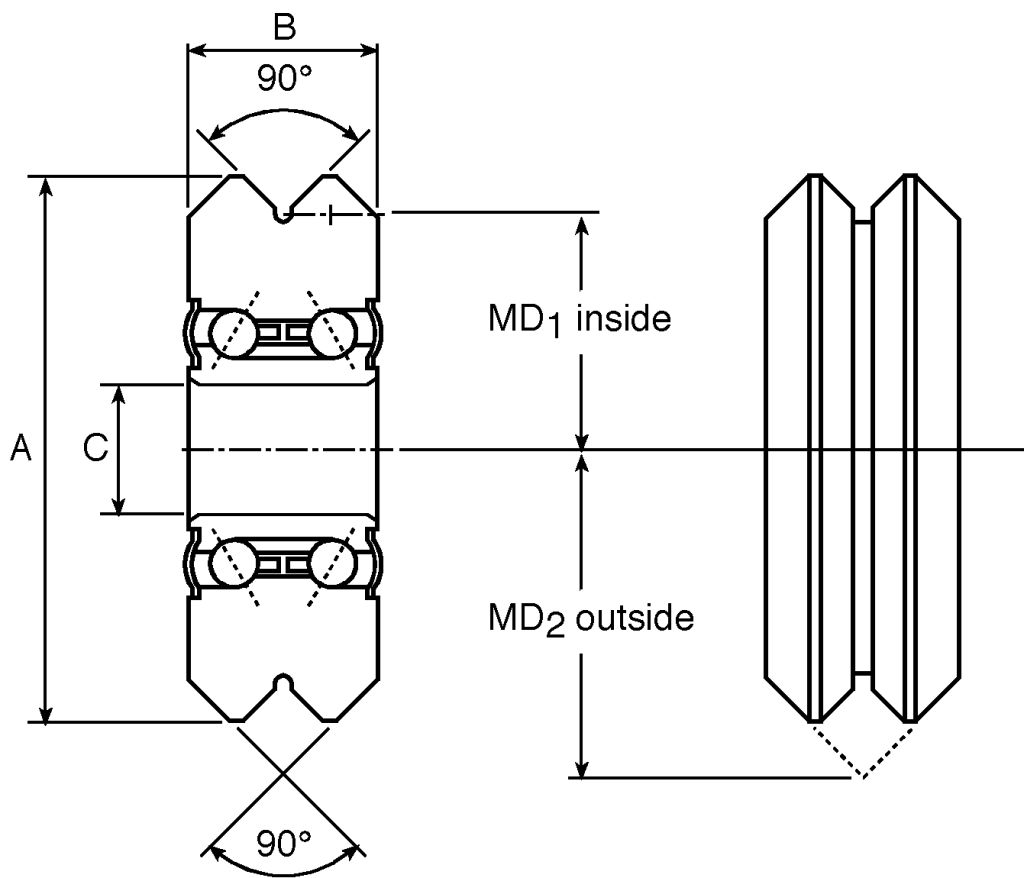 The guide wheels are precision ground, double row angular contact ball bearings which are pre-lubricated sealed units mounted on bushes