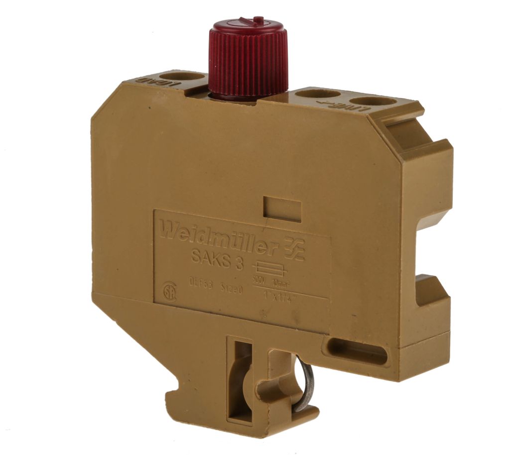 | Product description | Weidmuller Yellow SAKS Fused DIN Rail Terminal, 22 → 10 AWG, 630 V |