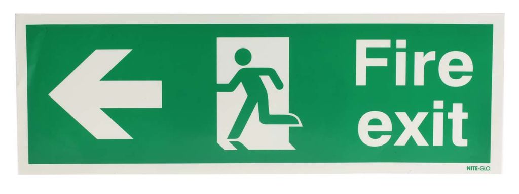 The regulations also state that all fire exit safety signs must contain a symbol e.g. a running man. Supplementary text only signs (e.g. FIRE EXIT) can be included on a sign or used in conjuction with a symbol sign but cannot be used without a symbol.