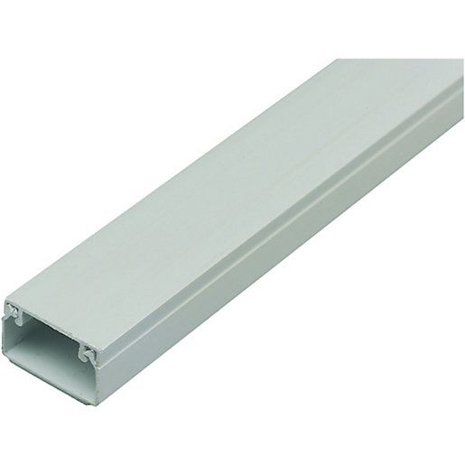 White self-adhesive coiled uPVC mini-trunking supplied in a dispenser box as a flat coil, ideal for most types of electrical installations. The trunking can be easily cut to the required length reducing waste and the necessity for excess joints and couplers. It is fixed to the required surface in a flat form and the sides are then folded up and the lid clipped into place.
