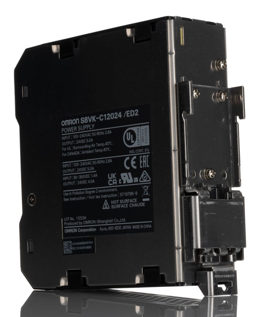 | Product description | Omron S8VK-C Switch Mode DIN Rail Power Supply 85 → 264V ac Input, 24V dc Output, 5A 120W |