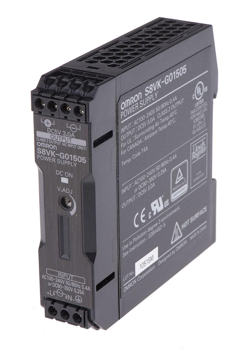 Omron S8VK-G Switch Mode DIN Rail Power Supply 85 → 264V ac Input, 5V dc Output, 3A 15W