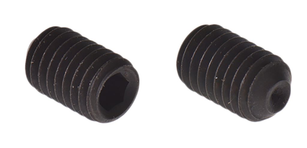 RS PRO range of hexagon grub screws features excellent capabilities within machine repair and fixing applications. Grub screws have no head (also known as headless or blind) and it is simply a threaded fastener to secure an object within another. They are generally used in tight areas where you do not want the head sticking out, or a little bit countersunk from the top of the material so nothing can hit it and interfere with the operation of the application. You tighten or undo them, using an Allen key or a hex key. They can have various tip point types which include: